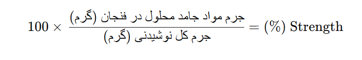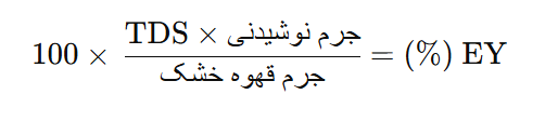 مثال : اگر TDS برابر 10٪ باشد ، جرم نوشیدنی برابر 40 گرم و جرم قهوه خشک 20 گرم باشد .