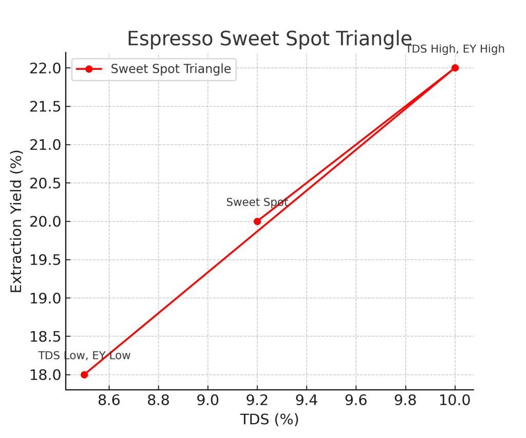 نمودار شماره ۱ — مثلث Sweet Spot در اسپرسو