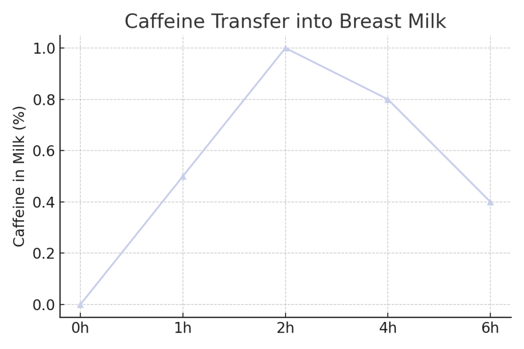 - حدود ۱٪ کافئین مصرفی مادر وارد شیر میشود.
