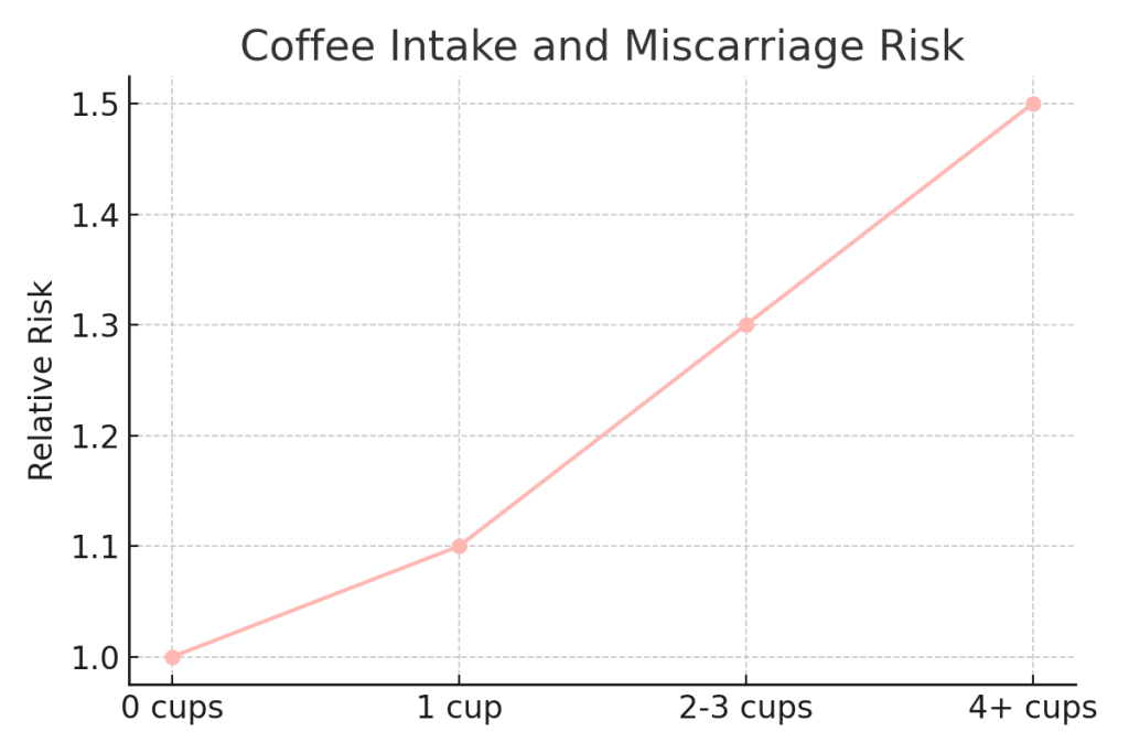 - متاآنالیز BMJ (2017) : مصرف بیش از ۳۰۰mg کافئین در روز با افزایش ۳۲٪ خطر سقط مرتبط است.