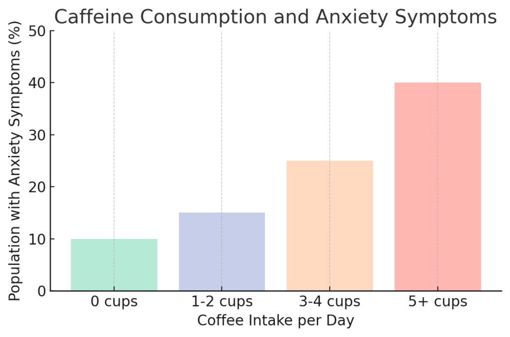 اضطراب معمولاً با افزایش فعالیت سیستم سمپاتیک همراه است. کافئین هم همین مسیر را فعال میکند: افزایش ضربان قلب، تعریق، و بیقراری.