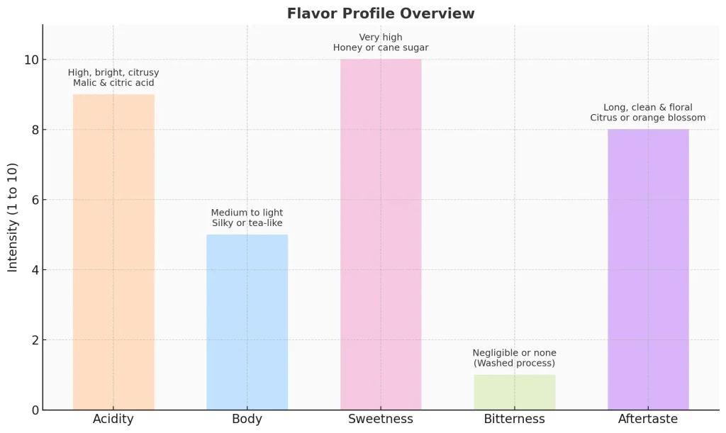 این نتها بسته به کشور تولیدکننده ، نوع فرآوری و پروفایل رُست متغیرند، اما همیشه در دستهی طعمیهای بسیار شفاف ، درخشان و گلی قرار میگیرند .